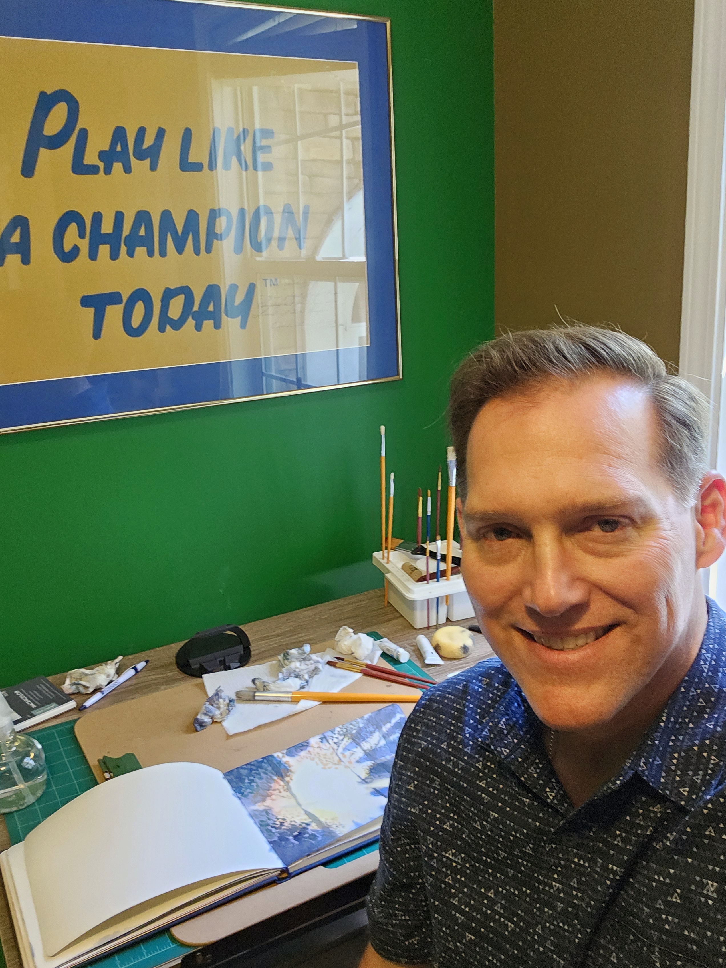 My name is Matt Kunz, and I am a Catholic artist who was commissioned to paint over fifty paintings for my parish, Saint Brendan the Navigatory Catholic Church in Cumming, GA. That experience allowed me to grow my style and develop my processes. Now, I am painting scenes to inspire hope during our struggles and to maintain faith through our storms. I want to tell stories of courage, including those moments where we have to believe in the unseen to find our strength.