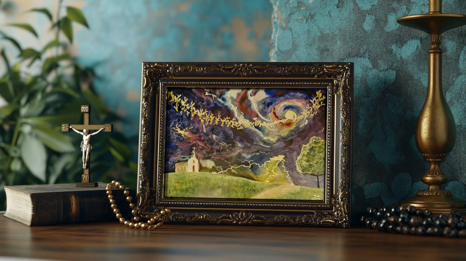 The day after it was completed, I took it to my priest to have it blessed. Next, I brought it to a friend's house for him to look at it. He was not Catholic, but he liked the painting. I carried the painting back to my car. Before I sat in the driver's seat, my friend received a call. "I found a book in my basement," the caller said. "You wrote an inscription inside it."